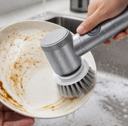 Nuestro cepillo eléctrico giratorio ofrece una limpieza profunda en menos tiempo, eliminando grasa, suciedad y residuos incrustados incluso en zonas difíciles. Su diseño ergonómico y resistente al agua lo hace perfecto para el uso diario en cocina, baño o cualquier superficie. Olvídate de frotar durante minutos y consigue resultados rápidos y eficaces sin complicaciones.